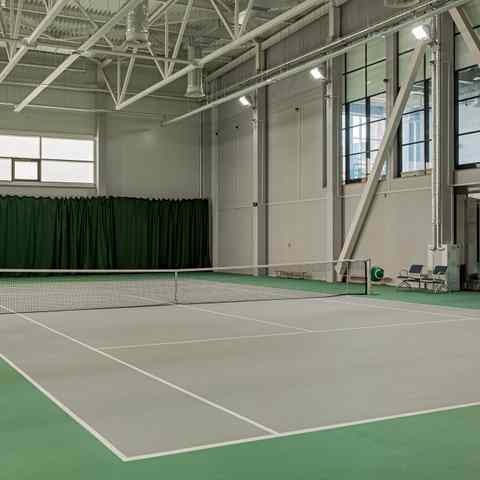 Очень красиво и чисто есть зал ОФП (зал общей физической подготовки), тренажорный зал , 3 теннисных корта, и бассейн куд...а вмещается 20 человек